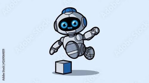 © Marek49, Fototapeta premium Vector Illustration of a Cute AI Robot Jumping with a Smile Generative aI