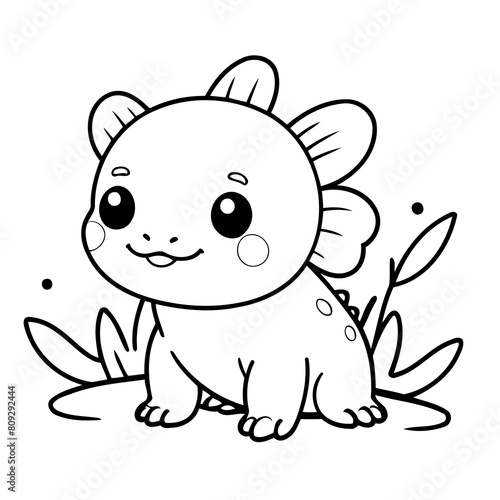 © meastudios, Fototapeta premium Vector illustration of a cute Axolotl drawing for children page