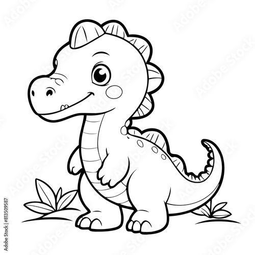 Fototapeta premium Vector illustration of a cute dinosaur doodle colouring activity for kids