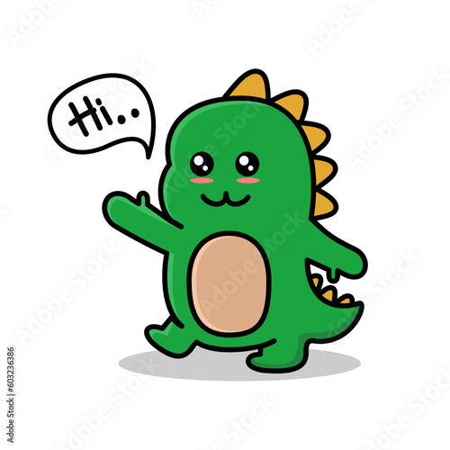 © Java pep, Obraz premium Vector illustration of a cute green dino with a text bubble that says hi