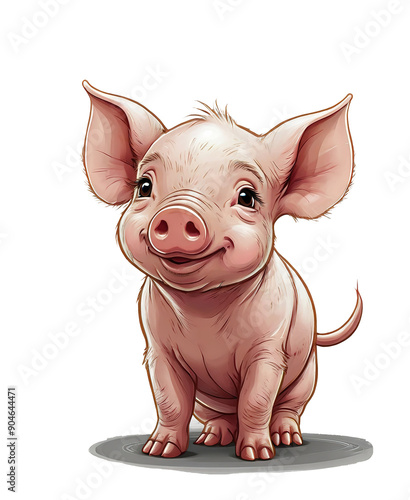© Supharb, Naklejka premium Vector illustration of a cute piggy cartoon in simple line style, isolated on transparent background