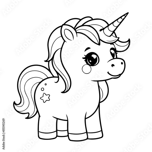Fototapeta premium Vector illustration of a cute Unicorn doodle colouring activity for kids