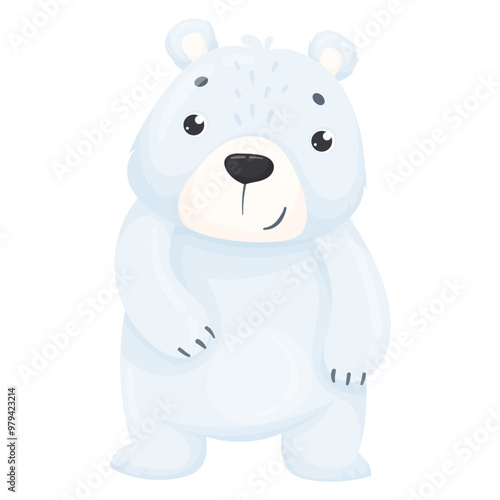© Maria, Fototapeta premium Vector illustration of a cute white polar bear isolated on a white background. Northern bear in cartoon vector style. Cute animals of Antarctica.