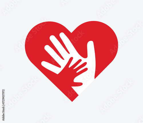 © creative design , Obraz premium Vector illustration of a floating red heart with two hands on it on a gray background