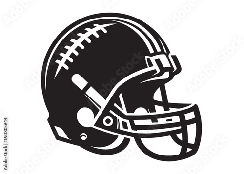 © Adobe design, Naklejka premium vector illustration of a football helmet logo, football helmet logo silhouette vector design, helmet vector logo silhouette illustration, football helmet logo vector silhouette on white background