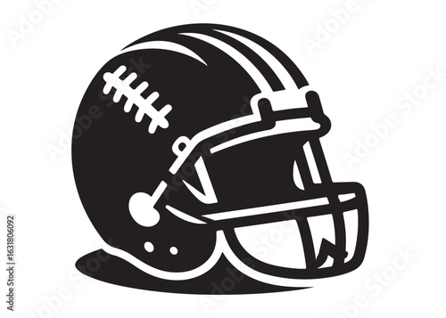 © Adobe design, Naklejka premium vector illustration of a football helmet logo, football helmet logo silhouette vector design, helmet vector logo silhouette illustration, football helmet logo vector silhouette on white background