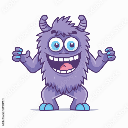 Fototapeta premium Vector illustration of a friendly purple furry monster with a happy expression and open arms.