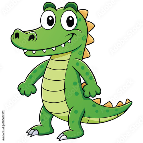 © TRTASFIQ, Obraz premium Vector illustration of a green crocodile smiley face isolated on white background