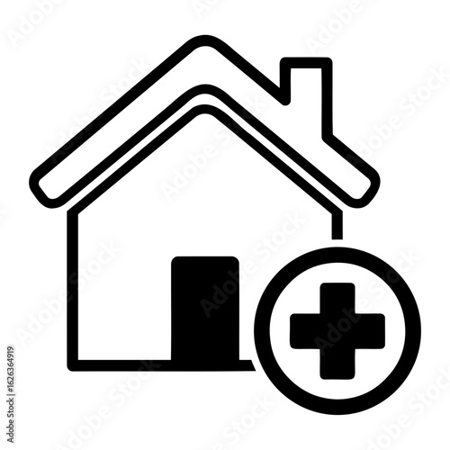 © QuickDesign24, Fototapeta premium Vector illustration of a house icon with a plus sign in a circle shape on transparent background