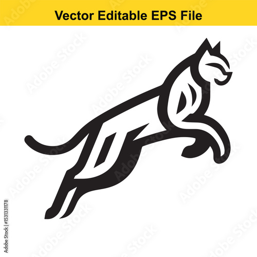 © MdZulhash, Fototapeta premium Vector illustration of a leaping panther, a stylized design suitable for logos or branding