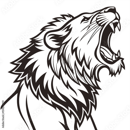 Fototapeta premium Vector illustration of a majestic black and white lion head, perfect for a...