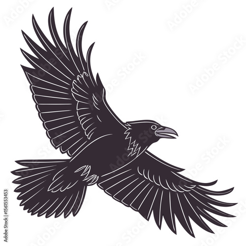 Fototapeta premium Vector illustration of a majestic black raven in flight against a clean white...