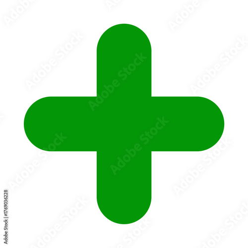 © Hafiz, Obraz premium Vector illustration of a plus sign icon in solid style with bright green color and rounded edges.