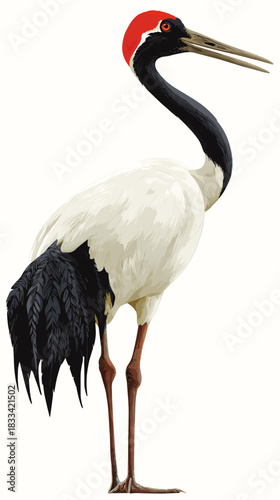 © The Illustraitor, Naklejka premium Vector illustration of a red-crowned crane bird isolated on a white background