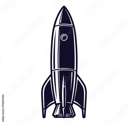 © MDKHALID, Obraz premium Vector illustration of a retro rocketship isolated on white background for space exploration