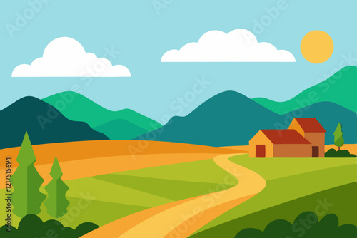 © Provati, Fototapeta premium vector illustration of a rural landscape