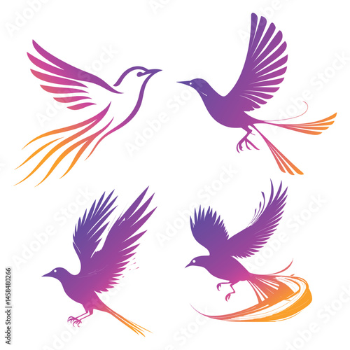 © NIKCHAN, Fototapeta premium vector illustration of a set of birds