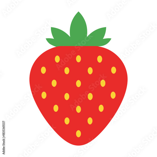Fototapeta premium Vector illustration of a single red strawberry with green leaves and yellow...