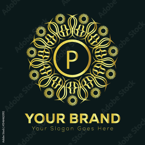 © MDMohsin, Fototapeta premium Vector illustration of a vintage label with P decorative Christmas holiday celebration design