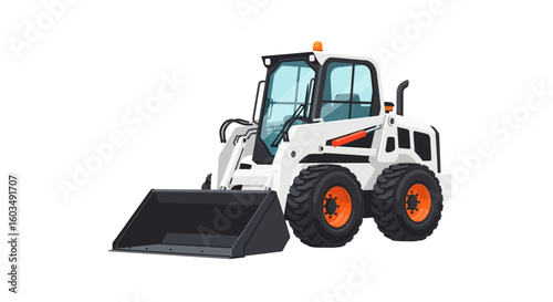 © Arsaka Saka, Fototapeta premium Vector Illustration of a White Skid Steer Loader Against a Clean Background for Construction Applications and Visual Media Content Creation