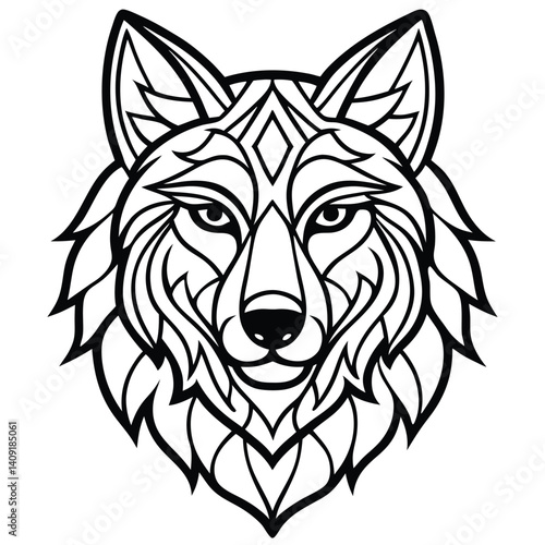 © Fatik Arts, Naklejka premium Vector illustration of a wild wolf head, a black and white drawing suitable as a tattoo or mascot