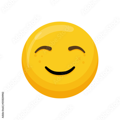 Fototapeta premium Vector illustration of a yellow emoticon with a happy expression and a closed smile.