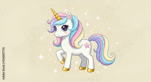 Fototapeta premium vector illustration of an abstract horse, White unicorn vector head with mane and horn. Unicorn on starry background