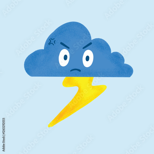 © BayStudio, Obraz premium vector illustration of an angry cloud thunderbolt with a fierce facial expression.