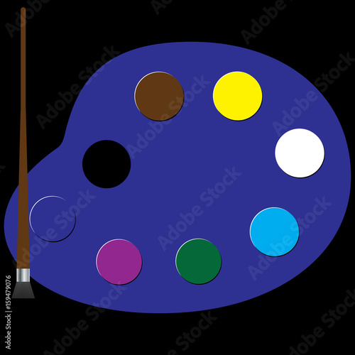 Fototapeta premium Vector illustration of an art palette with paints and brushes isolated on a...