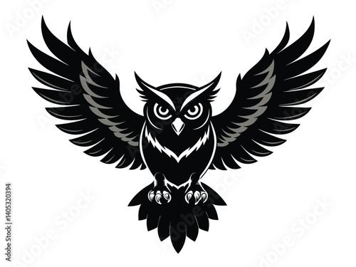 Obraz premium Vector illustration of an isolated eagle owl, a bird with wings, featuring a black silhouette design