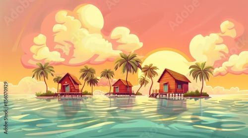 © Joyce, Obraz premium Vector illustration of beautiful scenic landscape of tropical sea beach.
