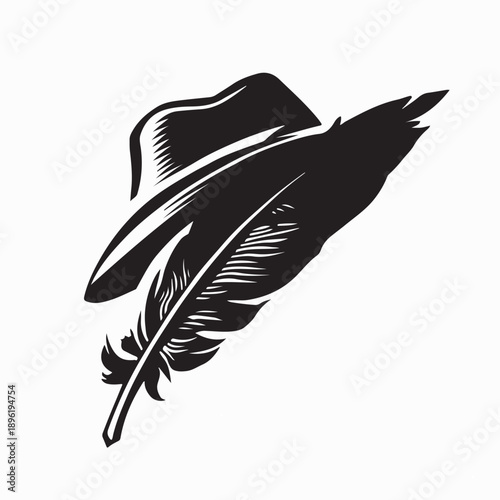 © Imam, Obraz premium Vector Illustration of Black and White Hunting Hat with Feather Stock Vector