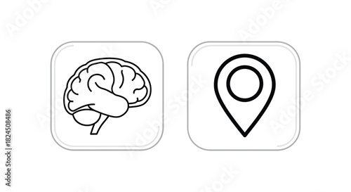 © ayesha, Obraz premium Vector illustration of brain and location pin icons isolated on for creative use