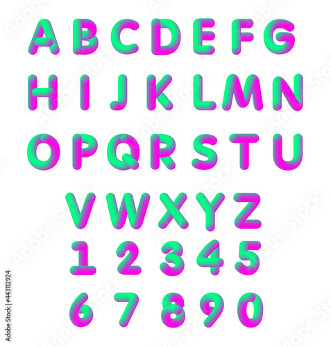 © Natalia, Fototapeta premium Vector illustration of bright color pink and green soft flexible neon 3D font. Alphabet isolated on a white background