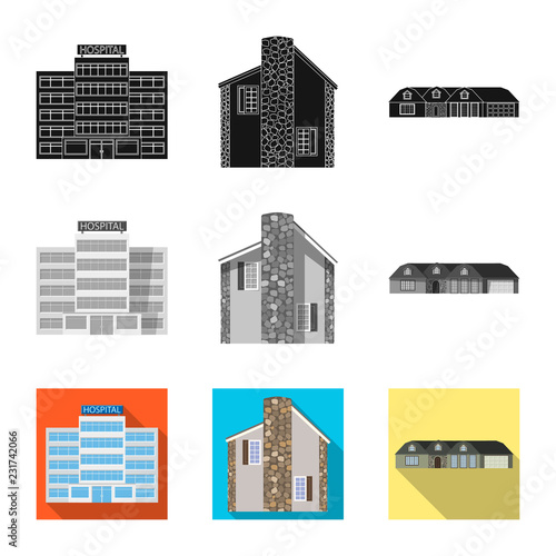 © Svitlana, Fototapeta premium Vector illustration of building and front logo. Collection of building and roof vector icon for stock.