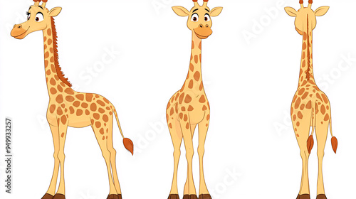 © VisionalMedia, Obraz premium Vector illustration of Cartoon giraffes set isolated on white background.
