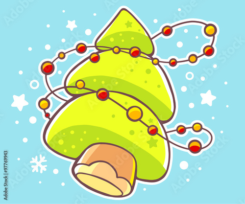 © wowomnom, Fototapeta premium Vector illustration of christmas tree on blue background.