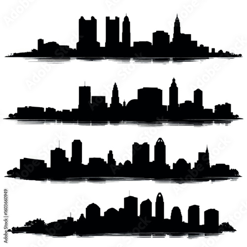 © Nadira, Fototapeta premium vector illustration of columbus ohio skyline silhouette set, Black & White silhouette set