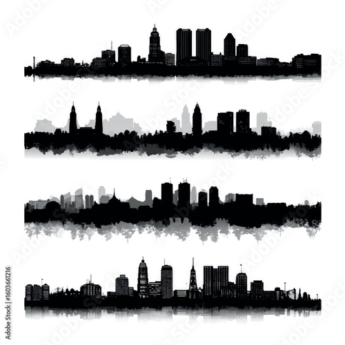 © Nadira, Fototapeta premium vector illustration of columbus ohio skyline silhouette set, Black & White silhouette set