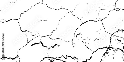 Obraz premium Vector Illustration of Cracked Ground Texture with Transparent Background – A Distressed Grunge Effect Featuring Natural Earth Line Patterns
