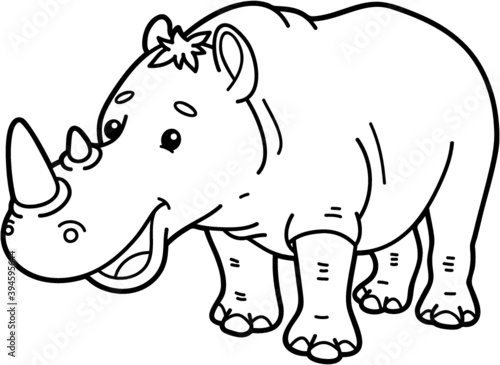 Fototapeta premium Vector illustration of cute cartoon rhinoceros character for children, coloring and scrap book