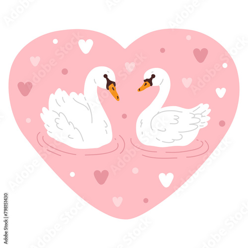 © boyusya, Fototapeta premium Vector illustration of cute cartoon swan couple for digital stamp,greeting card,sticker,icon, design