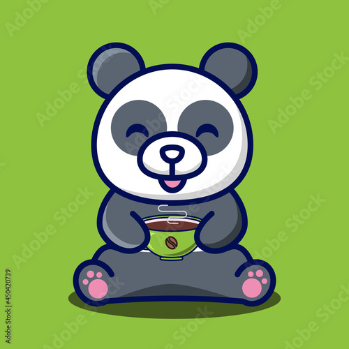 © RAHMAT, Naklejka premium vector illustration of cute panda drinking coffee, good for t-shirt, greeting card, invitation card or mascot
