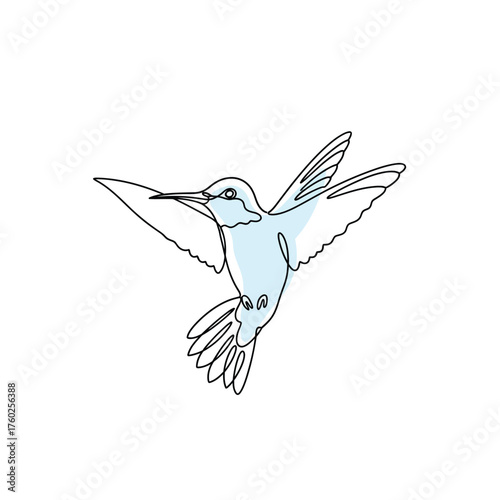 Fototapeta premium Vector illustration of delicate hummingbird illustration, rendered in a continuous line style, capturing its graceful flight and ethereal beauty in a minimalist design