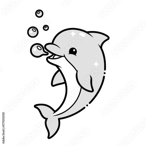 Obraz premium Vector Illustration of Dolphin Blowing Bubbles Cartoon Mascot Design.
