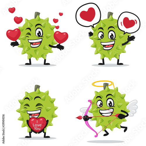 © Nugroho, Obraz premium vector illustration of durian mascot or character collection set with love or valentine or love theme