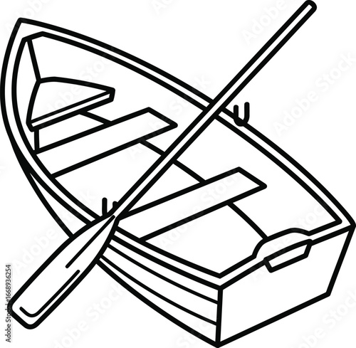 © isolatedgenerativeai, Fototapeta premium Vector illustration of empty rowboat with oar