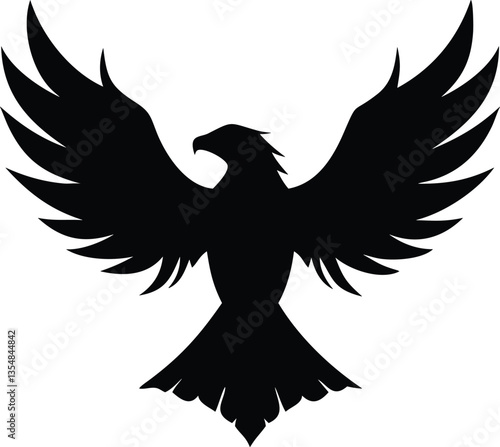 © Mustafa Kawa, Obraz premium vector illustration of Flying Eagle Silhouette with Spread Wings