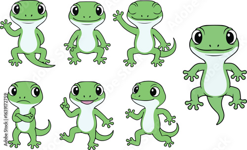 © weng, Obraz premium vector illustration of gecko lizard reptile funny cute cartoon mascot character cartoon with 7 poses 01