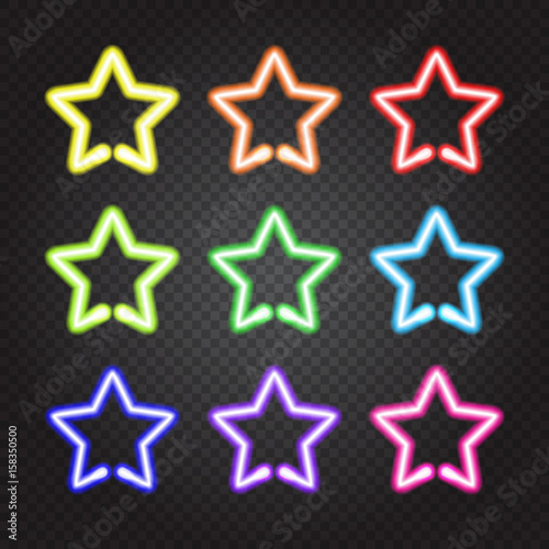 Fototapeta premium Vector illustration of glowing neon lights stars on dark transparent...
